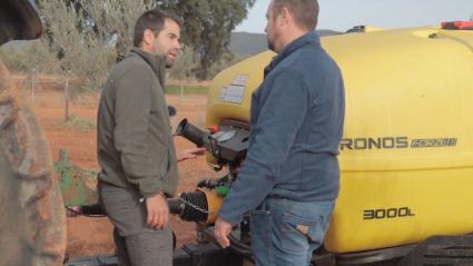 Un atomizador es la nueva adquisición de Los Mellis para el tratamiento de sus olivos