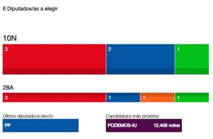 La candidatura de Unidas Podemos, que consiguió 38.252 apoyos electorales (9,37 %), perdió entonces el escaño que tenía por esta provincia.