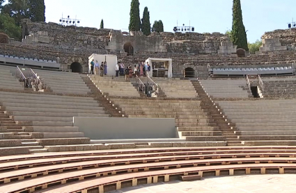 El graderío del Teatro Romano de Mérida está preparado para acoger al público del Festival Internacional de Teatro Clásico de Mérida que arrancará su sexagésimo sexta edición el próximo miércoles 22 con la presencia de Sus Majestades los Reyes.