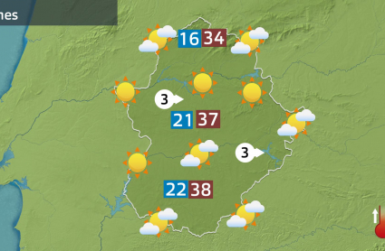 Así, el lunes comenzará con ambiente cálido en zonas como la parte baja del Jerte, puntos de la meseta cacereña, de La Serena y de La Siberia. Es muy probable que en estas comarcas no se baje de los 20ºC durante la madrugada. La tarde también se presenta de pleno verano con máximas algo más altas que las de hoy. No se descarta que se alcancen los 39ºC en municipios ubicados en la ribera del Guadiana. A primeras horas cruzarán algunas nubes altas y a partir de la tarde aparecerá nubosidad de evolución en las montañas, pero sin mayores consecuencias. El viento al amanecer será del este, girando por la tarde al oeste.