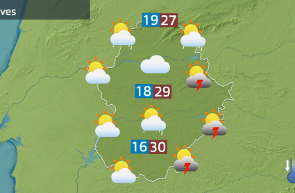 Las temperaturas bailarán al son de las nubes y las precipitaciones. En general, las máximas serán más bajas de lo que las hemos tenido hoy. Será así sobre todo en el este de la región y también en zonas del norte. Sin embargo pueden subir ligeramente en el suroeste de Badajoz. Y las mínimas se recuperarán con fuerza en el norte de Cáceres, donde las nubes no favorecerán que bajen mucho la próxima noche.