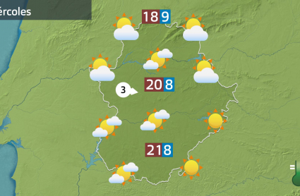 En cuanto a las temperaturas máximas, no tendremos grandes cambios y se mantendrán, las más altas, en torno a los 22 grados. Será en Guadiana, porque en el resto probablemente no los alcancemos, estando entre los 20 y 22 grados. Con la excepción de puntos situados más en zonas altas, donde ni siquiera llegarán a esa barrera de los 20 ºC. Las mínimas estarán en ligero descenso.